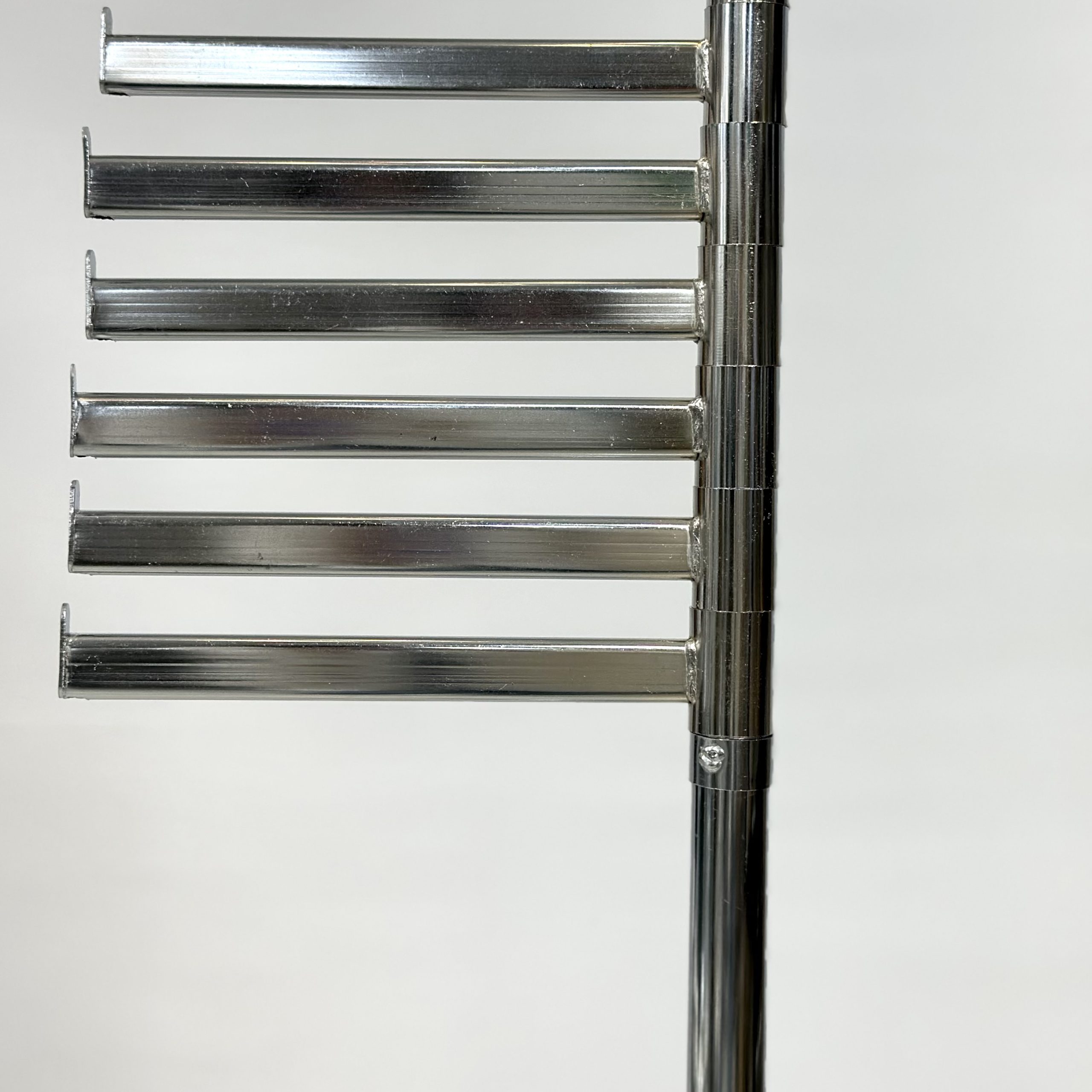 بدنه ی این رگال با متریال مقاوم ساخته شده تا در برابر استفاده روزمره و وزن شال ها و لباس ها کاملا پایدار باشد. شاخه ها به گونه ای طراحی شده اند که هم تفکیک و هم دسترسی به شال ها و لباس ها را آسان می کنند. این طراحی باعث می شود بتوانید بدون تلاش اضافه، سریع انتخاب کنید و سریع آویزان کنید.